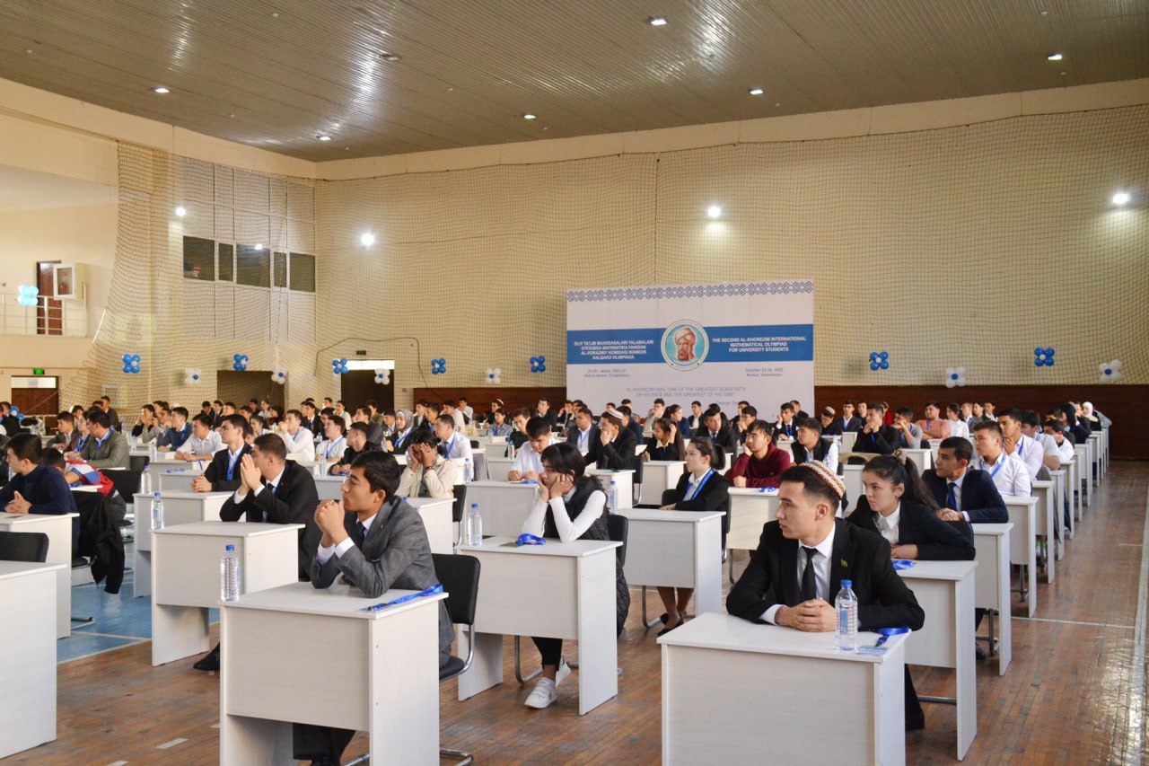 Xabar berganimizdek (https://t.me/eduuz/17718?single), bugun Qoraqalpoq davlat universitetida oliy ta’lim muassasalari o‘rtasida matematika fani bo‘yicha Muhammad al-Xorazmiy nomidagi II Xalqaro olimpiadasi bo‘lib o‘tmoqda. Unda 40 dan ortiq oliy ta’lim muassasalaridan 200 dan ortiq talabalar hamda yuqori malakali hakamlar hayʼati aʼzolari ishtirok etmoqda.