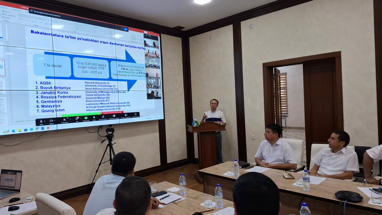 Tadbirda Oliy taʼlimni rivojlantirish tadqiqotlari markazi direktori Abduvali Xoliqov, direktor oʻrinbosari Muzaffar Esanov hamda bir qator nufuzli oliygohlar vakillari soʻzga chiqdi. Ular 2025/2026 oʻquv yilidan boshlab oliy taʼlim muassasalarining yuqori kurslarida oʻqitiladigan fanlar uchun TOP-300 ga kirgan xorijiy universitetlarning dasturlari asosida yangi oʻquv dasturlarini ishlab chiqish va tasdiqlash tartibi yuzasidan amalga oshirilgan ishlar haqida maʼlumot berdi.