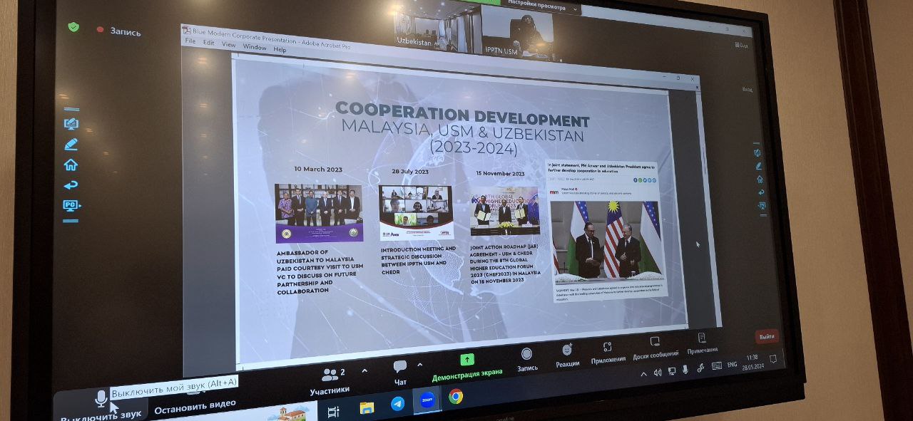 On 28 May this year Uzbekistan and Malaysia held an online meeting with representatives of the National Institute of Higher Education Research of Malaysia. During the meeting the issues of the Memorandum signed bilaterally were discussed.